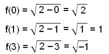 Med funktionen f(x) = √(2 - x) Bestäm f(0), f(1) och f(3) |