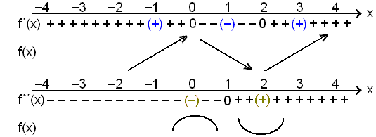 f´´(0) = 6·0 – 6 = –6                          (–)