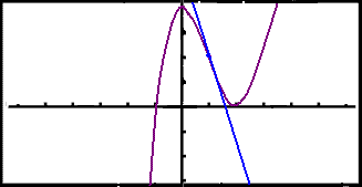 Vi kan kontrollere ved å tegne grafen til f(x) og tangenten i samme vindu på en grafisk kalkulator. Vi ser at tangenten skjærer grafen i vendepunktet.