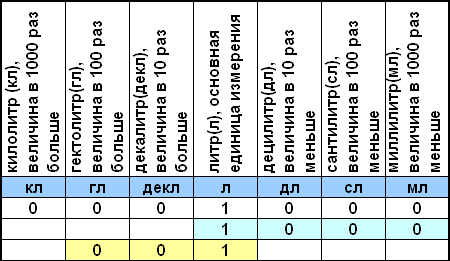 использования числового дома будем считать, что литр является основной единицей