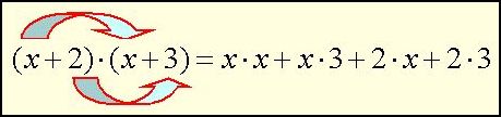 Arealet med højden (x+2) og bredden (x+3) bliver (x+2)(x+3)