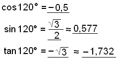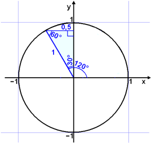 Žį er nęst 120° horniš (90°+ 30°) og aftur fįum viš 30°, 60° og 90° žrķhyrning.