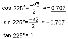 Reiknum hornaföllin fyrir 225° horn.