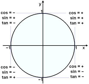 Žessi skilgreining sżnir okkur aš hornaföllin hafa mismunandi formerki eftir žvķ ķ hvaša fjóršung hnitakerfisins radķusinn OP vķsar.