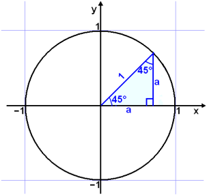 Hornaföllin fyrir 90° horn getum viš lesiš beint af einingarhringnum. Armur hornsins fellur saman viš y-įsinn žannig aš x-hnitiš er 0 og y-hnitiš er 1.