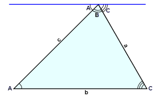 Summa allra hornanna í þríhyrningi er 180°. Það getum við séð með því að teikna línu samsíða grunnlínunni b í gegnum hornpunktinn B (sjá mynd).