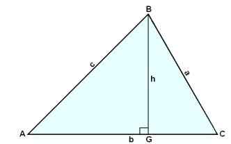Ef við drögum strik frá horninu B beint niður á grunnlínuna b þannig að það myndi rétt horn (90°) við hana þá nefnist strikið hæð þríhyrningsins.