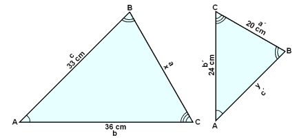 Þá er y/24 = 33/36 og y = 24∙33/36 = 22 cm.
