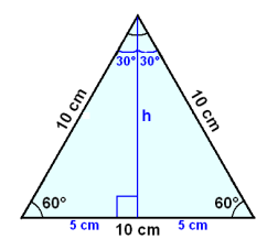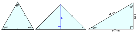 Hér stendur þannig á að þríhyrningurinn á myndinni hefur langhlið (10 cm) sem er tvöföld styttri skammhliðin (5 cm). Í öllum slíkum þríhyrningum eru hornin 30°, 60°og 90°.