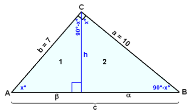 h = ab/c ≈ 10∙7/12,2 ≈ 5,7 cm