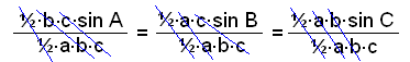 ½∙b∙c∙sin A = ½∙a∙c∙sin B = ½∙a∙b∙sin C = F