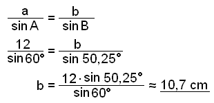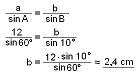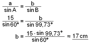 Setjum nú upp sinusregluna fyrir şennan şríhyrning og finnum hliğina b.