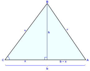 c2 = a2 + b2 − 2∙b∙x