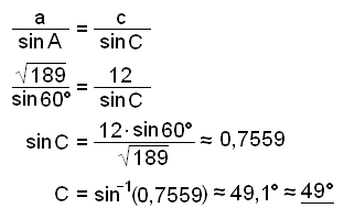 Nú getum viğ notağ sinusregluna til şess ağ finna horniğ C (viğ getum einnig notağ kósinusregluna).