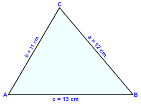 Í şríhyrningi er hliğin a = 12 cm, hliğin b = 11 cm og hliğin c = 13 cm. Finnum flatarmáliğ.