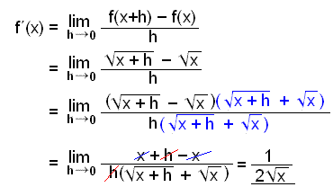 Žessar stęšur getum viš sett inn ķ markgildiš hér fyrir ofan og einfaldaš vegna žess aš nįlgunin veršur nįkvęmari eftir žvķ sem x minnkar. Ef viš einföldum og reiknum markgildiš į žennan hįtt žį fįum viš eftirfarandi reglu fyrir afleišu margfeldis tveggja falla: