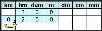 Hvaš eru 250 m margir kķlómetrar ? Viš setjum 250 metra inn ķ talnahśsiš og lesum af.