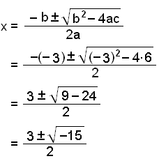Løs likningen x2 − 3x + 6 = 0