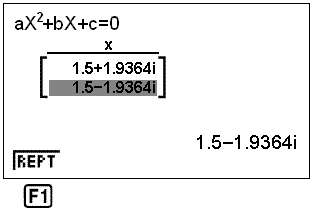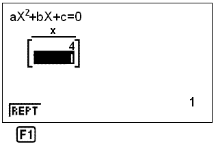 Til slutt velger vi SOLV ved å trykke F1. Løsningene 4 og 1 kommer frem på skjermen: