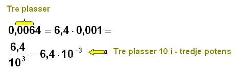 Tierpotenser med små tall, store tall og normalform (standardform).