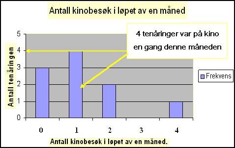 Ti tenåringer fikk spørsmål om hvor ofte de hadde vært på kino den siste måneden..