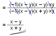 Jeśli przemnożymy wyrażenie w mianowniku przez -1, to otrzymamy to samo wyrażenie, co w nawiasie w liczniku. Zostawiamy w liczniku -1 poza nawiasem i skracamy. |