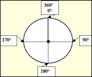 Koło dzieli się na 360 stopni.