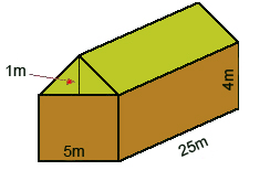 9.    ¿Cuánto heno (en m³) puede ser guardado en un establo con estas dimensiones?