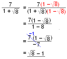 If there are two terms in the denominator we use the rule about conjugate terms to get rid of the roots. (a+b) and (a−b) are conjugate terms and: