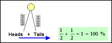 When you toss a coin there are two possible outcomes: 'heads' or 'tails'. Each of these outcomes is equally likely, since there is 1 'head' and 1 'tail' on the coin.